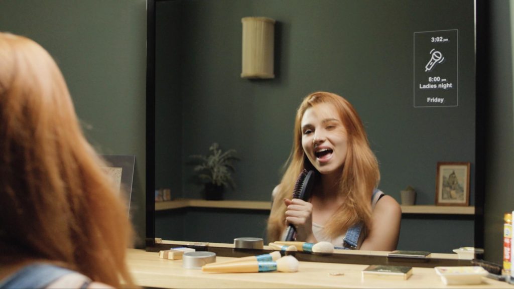 Further, MirroCool is equipped with a camera which recognizes registered user profiles through the device. Any time an unregistered profile is detected, users will be alerted through the intuitive MirroCool app. Users can snap selfies using the app and have them sent directly to a mobile phone for quick sharing. The mirror’s visual configuration can also be controlled by the widget manager to set up specific alerts and news based on user preferences. As mentioned, the camera can also be activated at any time for security and peace of mind – even if a user is not at home.